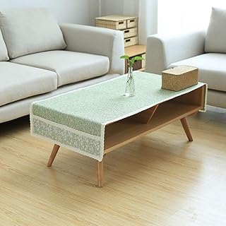 [今春花信]ティーテーブルクロス 長方形 ローテーブル用 綿麻 両側収納袋 テーブルカバー テーブルマット テレビボードクロス テーブルランナー 北欧風 撥水加工 汚れ防止 耐熱性 厚手 耐久性 おしゃれ インテリア 茶室 数寄屋 グリーン 60*180CM