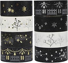 UOOOM 12巻入 マスキングテープ 和紙マスキングテープ カラフルマスキングテープ バリエーション豊富 デコレーション用 ノート・アルバム・小物作りDIYなど各シーンで活用可 さらにラッピングのマストアイテム (12x 黒と白のデザイン)