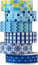 UOOOM 6巻入 マスキングテープ 和紙マスキングテープ カラフルマスキングテープ バリエーション豊富 デコレーション用 ノート・アルバム・小物作りDIYなど各シーンで活用可 さらにラッピングのマストアイテム (青い)