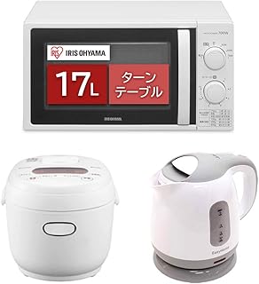 【新生活3点セット買い】アイリスオーヤマ 電子レンジ 17L 【西日本/60Hz】 + 炊飯器 3合 + ケトル グレー