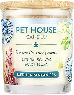 (Pack of 1, Mediterranean Sea) - One Fur All 100% Natural Soy Wax Candle, 20 Fragrances - Pet Odour Eliminator, 60-70 Hrs Burn Time, Non-toxic, Eco-Friendly Reusable Glass Jar Scented Candles - Pet House Candle, Mediterranean Sea