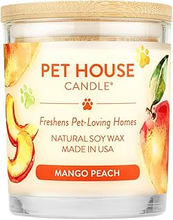 (Pack of 1, Mango Peach) - One Fur All - 100% Natural Soy Wax Candle, 20 Fragrances - Pet Odour Eliminator, Up to 60 Hours Burn Time, Non-Toxic, Eco-Friendly Reusable Glass Jar Scented Candles - Pet House Candle, Mango Peach