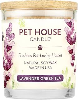 (Lavender Green Tea, Pack of 1) - One Fur All 100% Natural Soy Wax Candle, 20 Fragrances - Pet Odour Eliminator, 60-70 Hrs Burn Time, Non-toxic, Eco-Friendly Reusable Glass Jar Scented Candles - Pet House Candle, Lavender Green Tea