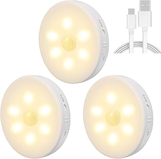 人感センサーライト USB充電式 700mAH キッチンライト 足元灯 安全灯 自動点灯 補助照明 常夜灯 防犯ライト マグネット固定 設置が便利です 防災用 車内/玄関/寝室/廊下/客間/トイレ/キッチン/子供部屋などに対応 (電球色 3個セット)