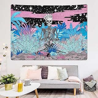 Lyacmy スカルタペストリー 瞑想 スケルトン タペストリー 雑草 植物 タペストリー 自然 タペストリー 壁掛け 部屋用 (51.2 x 59.1インチ)