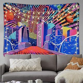 Boniboni トリッピー 超高層ビル タペストリー サイケデリック プラネット タペストリー ヒッピー トルネード ウェーブ タペストリー 抽象 宇宙 スター タペストリー トリッピー 天体 壁 タペストリー 部屋用 (51.2 x 59.1インチ)