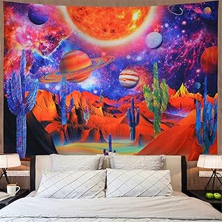 サイケデリック ギャラクシー 宇宙 タペストリー トリッピー サボテン タペストリー ミステリアス プラネットタペストリー ヒッピー 星空 タペストリー 砂漠 風景 タペストリー 壁掛け 寝室用 H70×W92