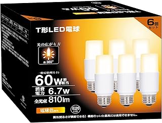 T形タイプ led電球 E26口金 60W形相当 6.7W 電球色 810lm 全方向 電球形蛍光灯EFD15代替推奨 断熱材施工器具対応 密閉形器具対応 一般電球 6個入り (T形タイプ 60W形 電球色)